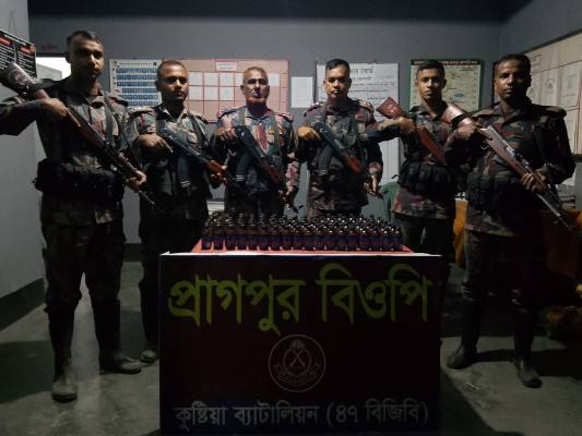 বিজিবি সূত্রে জানা গেছে, সুনির্দিষ্ট গোয়েন্দা তথ্যের ভিত্তিতে কুষ্টিয়া ব্যাটালিয়ন (৪৭ বিজিবি)-এর অধীনস্থ বিভিন্ন সীমান্তে টহল দলের অভিযান চালানো হয়। সোমবার রাতের এই অভিযানে ১২০ বোতল ফেয়ারডিল সিরাপ, ১০ বোতল ভারতীয় মদ এবং ৫০০ পিস ডেক্সামেথাসন ট্যাবলেট উদ্ধার করা হয়েছে। উদ্ধারকৃত মাদক ও মাদকদ্রব্যের আনুমানিক বাজার মূল্য ৬ লাখ ৫৩ হাজার ৪৩৭ টাকা। পরে এসব মাদক বিজিবি ব্যাটালিয়ন সিজার স্টোরে জমা দিয়ে ধ্বংসের প্রস্তুতি নেওয়া হয়েছে।