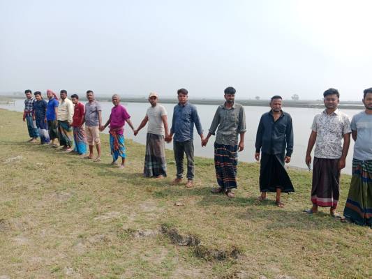 আশাশুনিতে জমির মালিকদের মানববন্ধন: পৈত্রিক মৎস্য ঘের ফেরতের দাবিতে