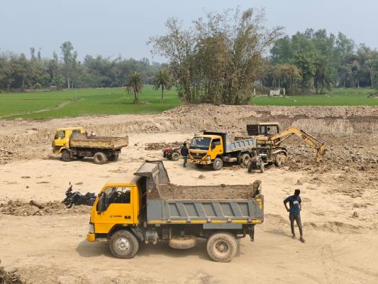 বগুড়ার শেরপুর উপজেলার মির্জাপুর ইউনিয়নের খোট্টাপাড়া গ্রামে আবাদি জমির শ্রেণি পরিবর্তন করে অবৈধভাবে পুকুর খননের অভিযোগ উঠেছে। দীর্ঘদিন ধরে দিন-রাত মাটি কাটার কাজ চলায় স্থানীয়দের মধ্যে চরম ক্ষোভ ও উদ্বেগ দেখা দিয়েছে। মাটি বহনের জন্য ড্রাম ট্রাক চলাচলে গ্রামীণ সড়ক ভেঙে জনদুর্ভোগ চরম আকার ধারণ করেছে।
