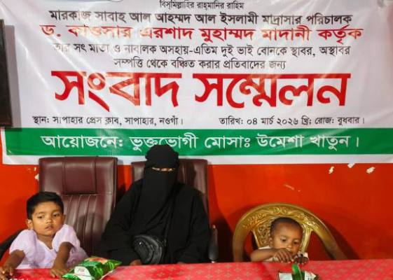 নওগাঁর সাপাহারে মৃত স্বামীর রেখে যাওয়া স্থাবর-অস্থাবর সম্পত্তি থেকে বঞ্চিত করার প্রতিবাদে এবং নায্য পাওনা আদায়ের দাবিতে সংবাদ সম্মেলন করেছেন এক অসহায় ভুক্তভোগী নারী। বুধবার (৪ মার্চ) দুপুরে সাপাহার প্রেস ক্লাবে আয়োজিত এই সংবাদ সম্মেলনে লিখিত বক্তব্য পাঠ করেন উপজেলার কৈবর্ত্তগ্রামের মৃত এরশাদ আলীর দ্বিতীয় স্ত্রী মোসাঃ উমেশা খাতুন।