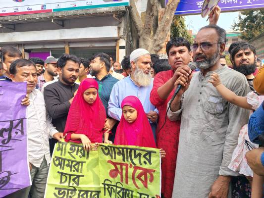 ইবি’র শিক্ষিকা রুনা হত্যার প্রতিবাদে কুষ্টিয়ায় শিক্ষক-শিক্ষার্থী ও স্বজনদের মানববন্ধন-সমাবেশ