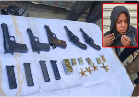 খুলনা মহানগরীর লবণচরা থানাধীন খুলনা–সাতক্ষীরা মহাসড়কের নিজ খামার এলাকায় যাত্রীবাহী বাসে তল্লাশি চালিয়ে বিপুল পরিমাণ বিদেশি অস্ত্র ও গুলিসহ এক নারীকে আটক করেছে পুলিশ।