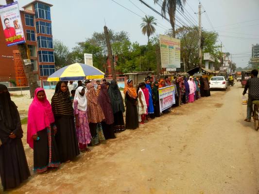 নওগাঁয় গৃহবধূ হত্যায় জড়িতদের বিচার চেয়ে মানববন্ধন