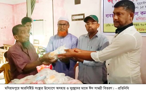 মনিরামপুরে অসহায় ও দুঃস্থদের মাঝে আরসিইউ সংস্থার উদ্যোগে ঈদ সামগ্রী বিতরণ