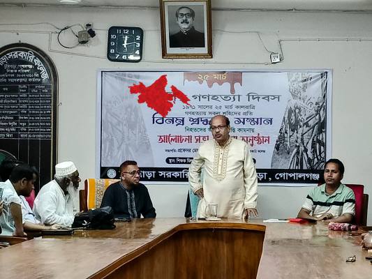 আলোচনা সভায় অধ্যক্ষ প্রফেসর মো. সাইদ মাহমুদ বলেন, ১৯৭১ সালের ২৫ মার্চের গণহত্যা মানব ইতিহাসের অন্যতম নিকৃষ্টতম ঘটনা। অসংখ্য মানুষের রক্তের বিনিময়ে অর্জিত এই স্বাধীনতার মূল্য আমাদের সর্বদা স্মরণ রাখতে হবে। তিনি আরও বলেন, দেশের স্বাধীনতার পেছনে বীর মুক্তিযোদ্ধাদের আত্মত্যাগ চিরস্মরণীয়, তাদের প্রতি আমাদের দায়বদ্ধতা রয়েছে।