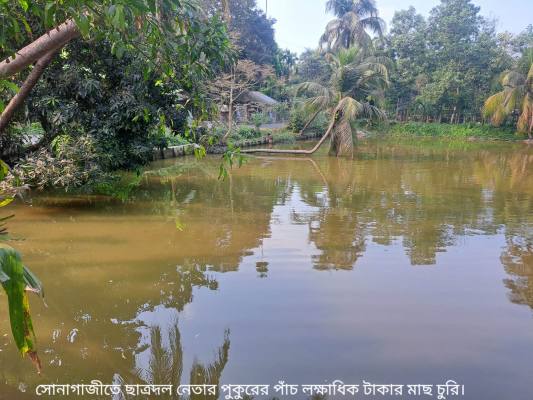 ফেনীর সোনাগাজীতে মাঈন উদ্দিন সুজন নামে এক ছাত্রদল নেতার মৎস্য খামার থেকে প্রায় ৫ লক্ষাধিক টাকার মাছ চুরির ঘটনা ঘটেছে।