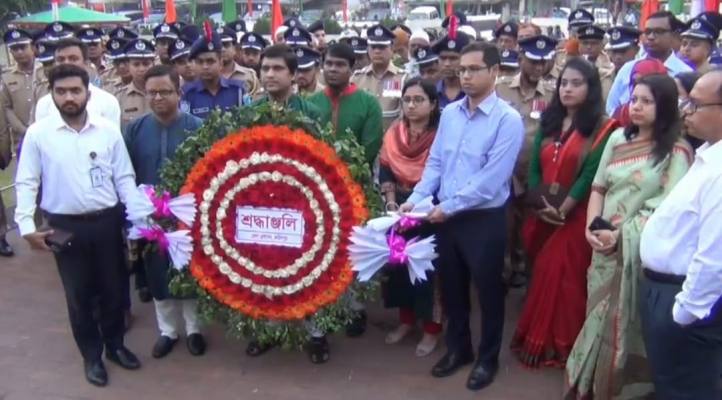 ভোর ৬টায় শহরের গোয়ালচামটস্থ শহীদ স্মৃতিফলকে পুষ্পস্তবক অর্পণের মাধ্যমে বীর শহীদদের প্রতি গভীর শ্রদ্ধা জানান জেলা প্রশাসক মো. কামরুল হাসান মোল্লা ও পুলিশ সুপার মো. নজরুল ইসলাম। এরপর পর্যায়ক্রমে জেলা বিএনপি ও এর সহযোগী সংগঠন, বিভিন্ন সরকারি দপ্তর, ফরিদপুর প্রেসক্লাব, বিভিন্ন শিক্ষাপ্রতিষ্ঠান এবং সামাজিক-সাংস্কৃতিক সংগঠনের নেতৃবৃন্দ শ্রদ্ধাঞ্জলি অর্পণ করেন। এ সময় স্মৃতিফলক এলাকায় সর্বস্তরের মানুষের ঢল নামে।