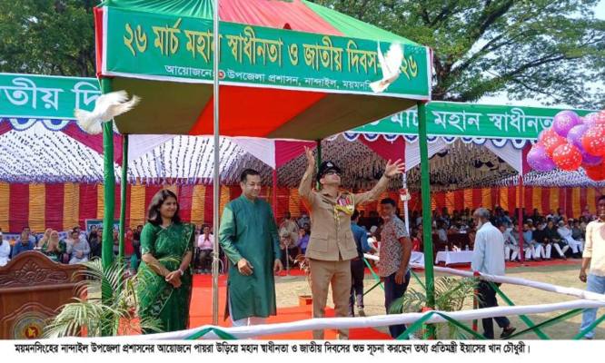 ময়মনসিংহের নান্দাইলে যথাযোগ্য মর্যাদা ও ভাবগম্ভীর পরিবেশে বৃহস্পতিবার (২৬ মার্চ) মহান স্বাধীনতা ও জাতীয় দিবস-২০২৬ উদযাপন করা হয়েছে।