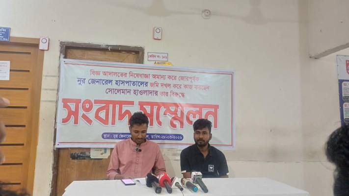 সংবাদ সম্মেলনে তিনি বলেন, সংশ্লিষ্ট জমি নিয়ে চলমান মামলায় আদালত থেকে নিষেধাজ্ঞা জারি থাকা সত্ত্বেও স্থানীয় প্রভাবশালী ব্যক্তি সোলেমান হাওলাদার ও তার সহযোগীরা জোরপূর্বক জমি দখল করে সেখানে স্থায়ী ভবন নির্মাণ কাজ চালিয়ে যাচ্ছেন। এটি আদালতের আদেশের প্রতি চরম অবজ্ঞা বলে তিনি উল্লেখ করেন।