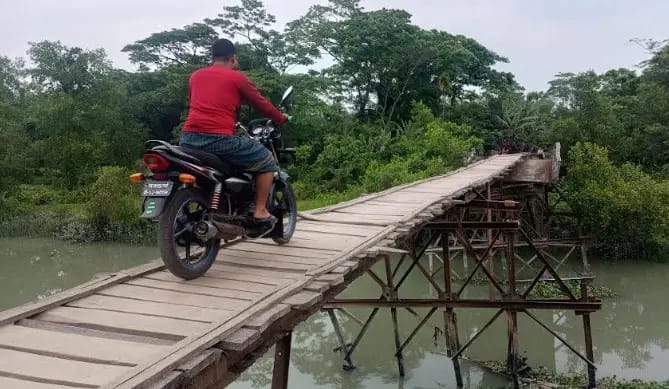 বরগুনার আমতলী উপজেলার আঠারোগাছিয়া ইউনিয়নের সোনাখালী বাজার সংলগ্ন খালের ওপর নির্মিত একটি গুরুত্বপূর্ণ সেতু দীর্ঘ ১২ বছর ধরে ভাঙা অবস্থায় পড়ে আছে। সেতুর মাঝখানের অংশ ধসে যাওয়ায় স্থানীয়দের উদ্যোগে বসানো নড়বড়ে কাঠের পাটাতনের ওপর দিয়ে জীবনের ঝুঁকি নিয়ে চলাচল করছেন অন্তত ছয়টি গ্রামের প্রায় ৩৫ থেকে ৪০ হাজার মানুষ।