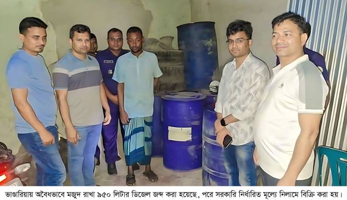 ভাণ্ডারিয়ায় পৃথক অভিযানে ২,৩২০ লিটার ডিজেল জব্দ, নিলামে বিক্রি; তিনজনকে জরিমানা