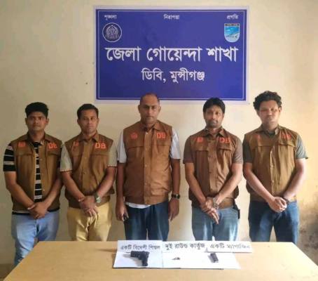 বিজ্ঞপ্তি সুত্রে জানা যায়, গোপন তথ্যের ভিত্তিতে অভিযান পরিচালনা করে টংগীবাড়ী উপজেলার যশলং ইউনিয়নের হাটখান এলাকার ইয়ারব হাওলাদার (সাবেক মেম্বার) এর বসত বাড়ির পশ্চিম পাশের পুকুরের পশ্চিম পাড় হতে পরিত্যক্ত অবস্থায় ০১টি বিদেশী পিস্তল, ০১টি পিস্তলের ম্যাগাজিন ও ০২ (দুই) রাউন্ড পিস্তলের কার্তুজ উদ্ধার করা হয়।