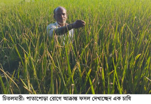 বাগেরহাটের চিতলমারীতে হঠাৎ করে ফসলে পাতাপোড়া রোগ দেখা দেওয়ায় চাষিদের মধ্যে চরম হতাশা বিরাজ করছে।