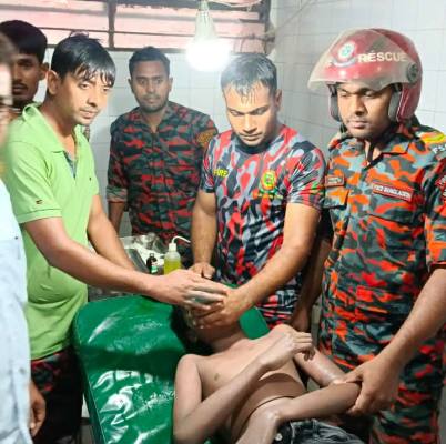 নিহতের নানি মিনু রাণী হালদার হাসপাতালের মেঝেতে বিলাপ করে বলেন, “দুপুরে গোসল করতে গিয়ে আমার নাতি আর ফিরে আসেনি।”