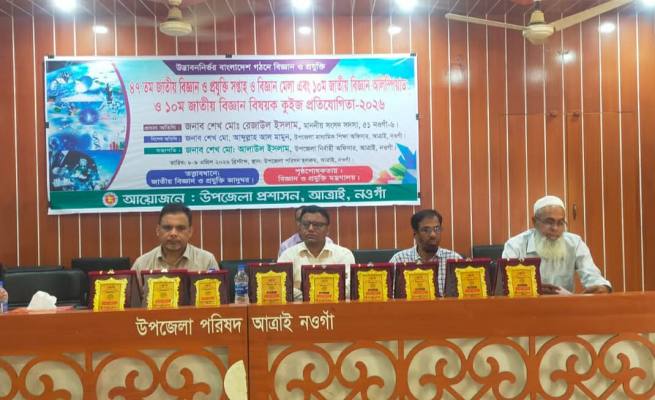 উদ্ভাবননির্ভর বাংলাদেশ গঠনে বিজ্ঞান ও প্রযুক্তি’ এই প্রতিপাদ্যকে সামনে রেখে নওগাঁর আত্রাইয়ে অত্যন্ত উৎসাহ-উদ্দীপনার মধ্য দিয়ে ৪৭তম জাতীয় বিজ্ঞান ও প্রযুক্তি সপ্তাহ এবং বিজ্ঞান মেলা ২০২৬ অনুষ্ঠিত হয়েছে।