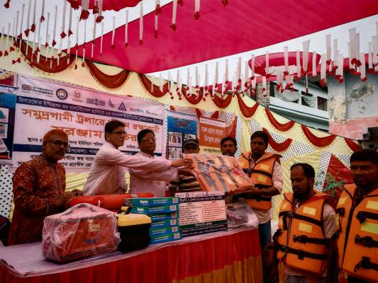গভীর সমুদ্র ও নদ‐নদীতে মাছ শিকারে যাওয়া ট্রলারে জেলেদের জীবন রক্ষাকারী সরঞ্জামাদি বিতরণ করা হয়েছে।
