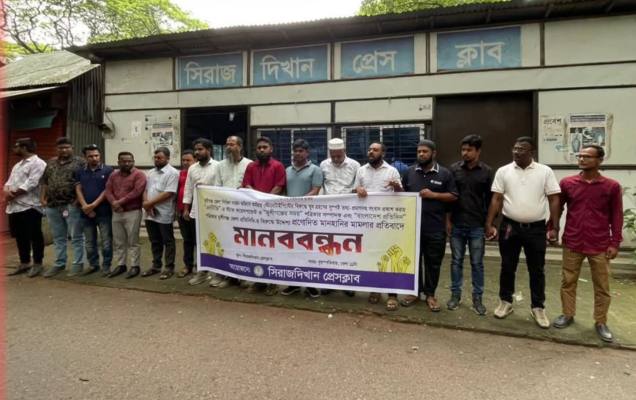 মুন্সীগঞ্জের সিরাজদিখানে দুই সাংবাদিকের বিরুদ্ধে দায়ের করা মিথ্যা ও উদ্দেশ্যপ্রণোদিত মানহানির মামলার প্রতিবাদে মানববন্ধন অনুষ্ঠিত হয়েছে।