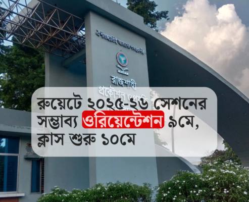 রাজশাহী প্রকৌশল ও প্রযুক্তি বিশ্ববিদ্যালয় (রুয়েট) ২০২৫–২৬ শিক্ষাবর্ষের ১ম বর্ষ স্নাতক কোর্সে ৪র্থ ধাপে ভর্তি প্রক্রিয়ার বিস্তারিত বিজ্ঞপ্তি প্রকাশ করেছে। এতে ওরিয়েন্টেশন ৯ মে এবং ক্লাস শুরু ১০ মে থেকে হওয়ার সম্ভাব্য তারিখ ঘোষণা করা হয়েছে।