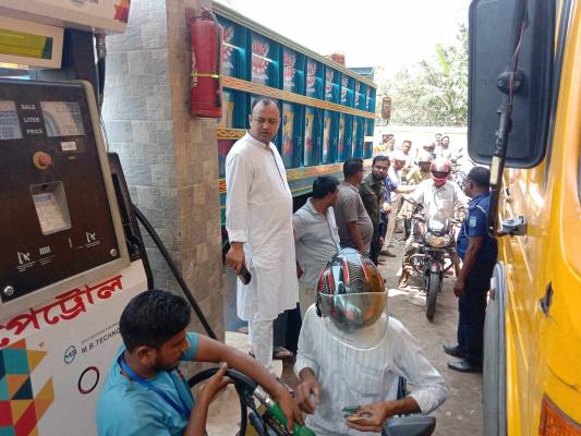 বকশীগঞ্জে তেলের অপেক্ষায় চালকরা, পাম্পে তদারকি করতে তৎপর ইউএনও
