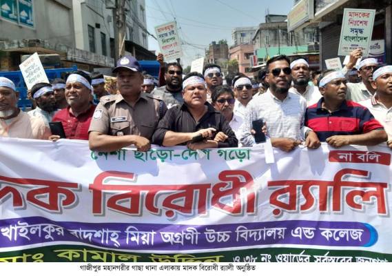 গাজীপুর মহানগরীর গাছা এলাকায় মাদকবিরোধী সচেতনতা জোরদারে ব্যাপক জনসম্পৃক্ততায় এক বর্ণাঢ্য র্যালি অনুষ্ঠিত হয়েছে। স্থানীয় রাজনৈতিক নেতৃবৃন্দ, শিক্ষার্থী, শিক্ষক ও পুলিশ সদস্যদের অংশগ্রহণে আয়োজিত এ কর্মসূচি মাদক নির্মূলে সামাজিক প্রতিরোধ গড়ে তোলার জোরালো বার্তা দেয়।