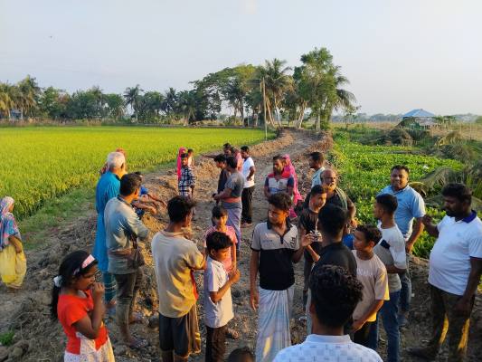 তারা আরও জানান, গত ১২ এপ্রিল সড়কের কাজ চলাকালে হায়দার আলী বাধা দিলে উপস্থিত কিছু কিশোর উন্নয়ন কাজের পক্ষে কথা বলে। এতে উত্তেজনা সৃষ্টি হলে আরিফুল মোল্লা নামে এক কিশোরকে মারধরের ঘটনা ঘটে। পরে উভয়পক্ষের মধ্যে সংঘর্ষে কয়েকজন আহত হন। ঘটনার পর এলাকাবাসী সড়ক পাকাকরণ দ্রুত সম্পন্নের দাবিতে মিছিল করেন।