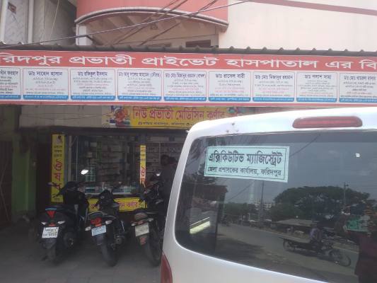 ফরিদপুরে গলায় টিউমার অপারেশনের পর মিম (১৫) নামে এক কিশোরীর মৃত্যুকে কেন্দ্র করে প্রভাতী (প্রাঃ) হাসপাতালে অভিযান চালিয়েছে জেলা প্রশাসন ও স্বাস্থ্য বিভাগ। ‘ভুল চিকিৎসা’ ও চিকিৎসকের অবহেলার অভিযোগ ওঠার প্রেক্ষিতে সোমবার (২০ এপ্রিল) দুপুরে এ অভিযান পরিচালিত হয়।