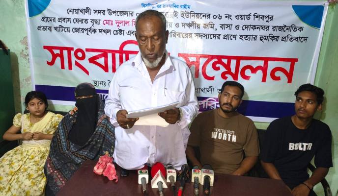 বৃহস্পতিবার (২৩ এপ্রিল) সকালে জেলা শহর মাইজদীতে একটি দৈনিক পত্রিকার জেলা কার্যালয়ে আয়োজিত সংবাদ সম্মেলনে ভুক্তভোগী মো. দুলাল মিয়া এসব অভিযোগ তুলে ধরেন। এসময় তার মেয়ে হাসিনা আক্তার পলি, ছেলে মোবারক হোসেন রনি ও নাতি আবদুল্লাহ আল নোমান মাহিসহ পরিবারের সদস্যরা উপস্থিত ছিলেন।