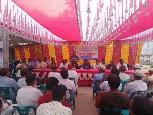 শনিবার (২৫ এপ্রিল ২০২৬) তারিখে মেলান্দহ থানাধীন ৭ নং চরবামিপাকুরিয়া ইউনিয়নের ভাবকি বাজারে এই সভার আয়োজন করা হয়। উক্ত মতবিনিময় ও উঠান বৈঠকে সভাপতিত্ব করেন মেলান্দহ থানার অফিসার ইনচার্জ মোঃ ওবায়দুর রহমান। এতে প্রধান অতিথি হিসেবে উপস্থিত ছিলেন জামালপুর জেলার মাদারগঞ্জ সার্কেল সিনিয়র সহকারী পুলিশ সুপার মোস্তাফিজুর রহমান ভূঞা।