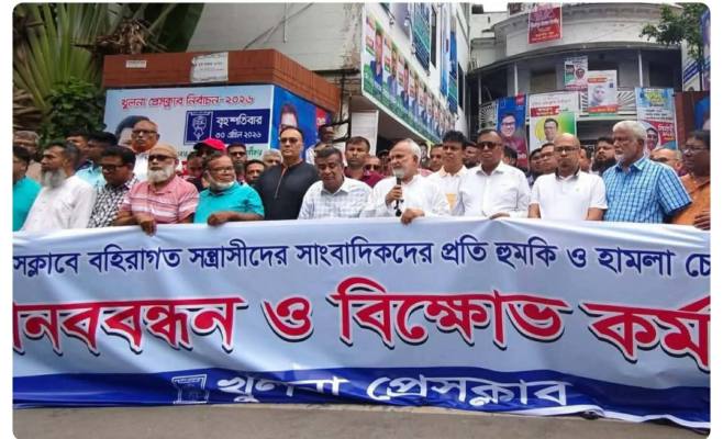 সমাবেশে সিসিটিভি ফুটেজ দেখে দ্রুত জড়িতদের শনাক্ত করে আইনের আওতায় আনার দাবি জানানো হয়। একই সঙ্গে ঘটনার নেপথ্যের ব্যক্তিদেরও খুঁজে বের করার আহ্বান জানান বক্তারা। খুলনার চার শহীদ সাংবাদিকের স্মরণে শ্রদ্ধা জানিয়ে তারা বলেন, অতীতের মতো সহিংসতার পুনরাবৃত্তি আর দেখতে চায় না সাংবাদিক সমাজ।