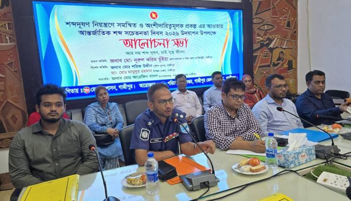 “আর নয় শব্দ দূষণ, চাই সুস্থ জীবন”—এই প্রতিপাদ্যকে সামনে রেখে গাজীপুরে আন্তর্জাতিক শব্দ সচেতনতা দিবস ২০২৬ উপলক্ষে বুধবার জেলা প্রশাসকের কার্যালয়ে সচেতনতামূলক র‌্যালি ও আলোচনা সভা অনুষ্ঠিত হয়েছে।