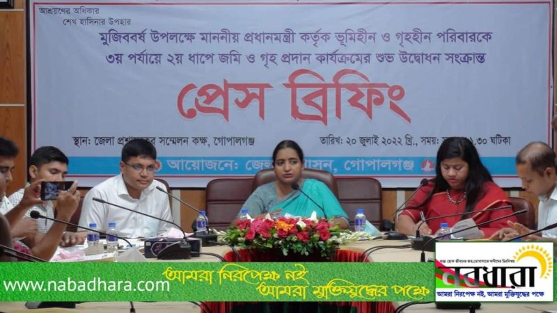 গোপালগঞ্জে ৬১৯টি সুবিধাভোগী পরিবারের মাঝে মুজিববর্ষের উপহার স্বরুপ ঘর হস্তান্তর করা হবে। আজ বুধবার দুপুরে জেলা প্রশাসকের সম্মেলন কক্ষে অনুষ্ঠিত এক প্রেস ব্রিফিং-এ এসব তথ্য জানিয়েছেন জেলা প্রশাসক শাহিদা…