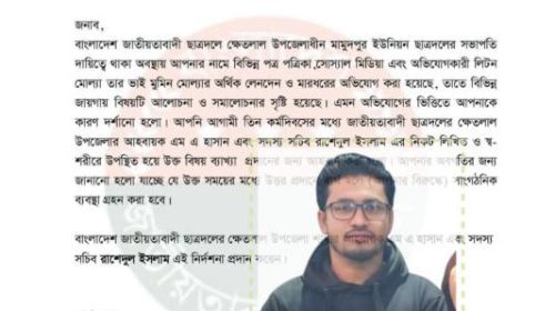 জয়পুরহাট প্রতিনিধি জয়পুরহাটের ক্ষেতলাল উপজেলার মামুদপুর ইউনিয়ন ছাত্রদলের সভাপতি আবির ইত্তেখারের বিরুদ্ধে মারধর ও টাকা আত্মসাতের অভিযোগ উঠেছে। এ ঘটনায় তাকে কারণ দর্শানোর নোটিশ দিয়েছে ক্ষেতলাল উপজেলা ছাত্রদল। মঙ্গলবার (১০…