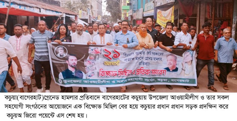 ২১ আগষ্ট বিএনপি-জামাত জোট সরকারের আমলে বর্তমান মাননীয় প্রধানমন্ত্রী শেখ হাসিনার উপর গ্রেনেড হামলার প্রতিবাদে বাগেরহাটের কচুয়ায় উপজেলা আওয়ামীলীগ ও তার সকল সহযোগী সংগঠনের আয়োজনে এক বিক্ষোভ মিছিল ও প্রতিবাদ…