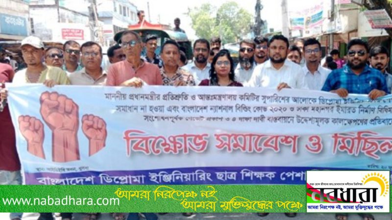 ডিপ্লোমা ইঞ্জিনিয়ারদের পেশাগত সমস্যার সমাধান না হওয়া এবং বাংলাদেশ ন্যাশনাল বিল্ডিং কোড ২০২০ ও ঢাকা মহানগর ইমরাত নির্মাণ বিধিমালা ২০০৮ সংশোধনপূর্বক গেজেট প্রকাশ ও ৪দফা দাবি বাস্তবায়নে উদ্দেশ্যমূলক কালক্ষেপনের প্রতিবাদে…