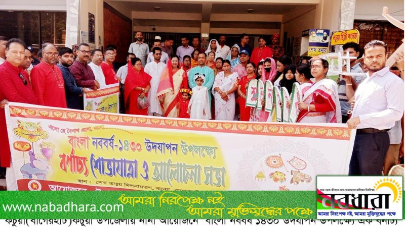 বাগেরহাটের জেলার বিভিন্ন উপজেলার মতো কচুয়া উপজেলায়ও নানা আয়োজনে বাংলা নববর্ষ ১৪৩০ উদযাপন উপলক্ষ্যে বর্নাঢ্য শোভাযাত্রা,আলোচনা সভা ও সাংস্কৃতিক অনুষ্ঠান অনুষ্ঠিত হয়েছে। বাংলা নববর্ষ ১৪৩০ উদযাপন উপলক্ষ্যে উপজেলা পরিষদ ও…