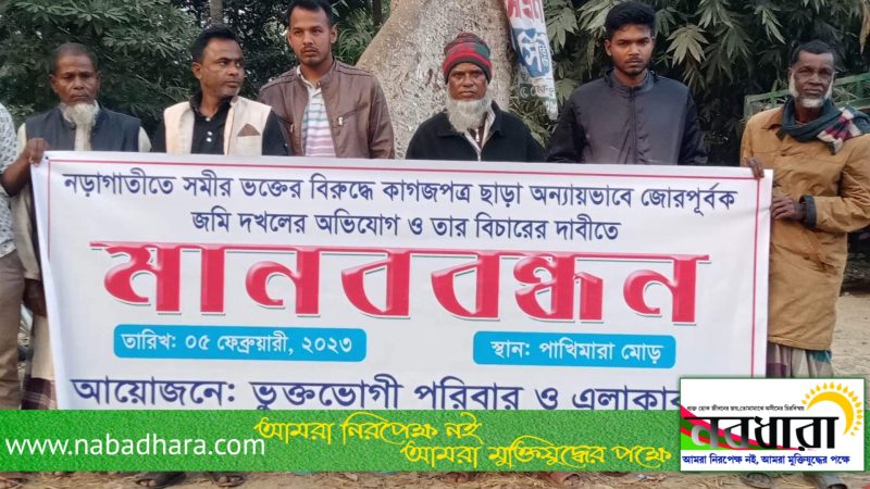 ড়াইলের কালিয়া উপজেলার নড়াগাতী থানার পাখীমারা গ্রামের সমীর ভক্তের বিরুদ্ধে রেকর্ডিও জমি জোরপূর্বক দখলের প্রতিবাদে মানববন্ধন করেছে আনিচুর শিকদার গং ও এলাকাবাসী। ৫ ফেব্রুয়ারী (রবিবার) বিকেল ৫ টায় পাখীমারা বাজারে…
