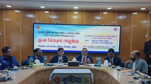 দৌলতপুর (কুষ্টিয়া) প্রতিনিধি কুষ্টিয়ায় সড়ক দুর্ঘটনায় হতাহতদের পরিবারের সদস্যদের হাতে সরকারি অনুদানের চেক তুলে দেওয়া হয়েছে। আজ বৃহস্পতিবার (১৫ জানুয়ারি) দুপুরে বাংলাদেশ সড়ক পরিবহন কর্তৃপক্ষের (বিআরটিএ) ট্রাফিক বোর্ডের উদ্যোগে কুষ্টিয়া…