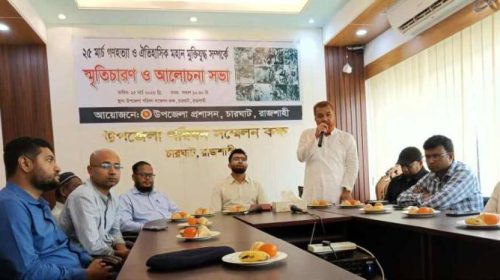 চারঘাট (রাজশাহী) প্রতিনিধি রাজশাহীর চারঘাটে ২৫ মার্চ গণহত্যা ও ঐতিহাসিক মহান মুক্তিযুদ্ধ সম্পর্কে স্মৃতিচারণ ও আলোচনা সভা অনুষ্ঠিত হয়েছে। উপজেলা প্রশাসনের আয়োজনে বুধবার (২৫ মার্চ ২৬) সকাল সাড়ে ১০ টায়…