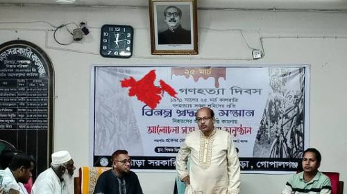 নাফিজা সুলতানা, টুঙ্গিপাড়া সরকারি কলেজ প্রতিনিধি মহান স্বাধীনতা যুদ্ধের ইতিহাসে ২৫ মার্চের কালরাতের শহীদদের স্মরণে টুঙ্গিপাড়া সরকারি কলেজে যথাযোগ্য মর্যাদায় গণহত্যা দিবস পালিত হয়েছে। বুধবার সকালে কলেজের শিক্ষক পরিষদ মিলনায়তনে…
