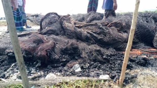 প্রতাপনগরে দুর্বৃত্তদের আগুনে মৎস্যজীবীর ১১টি মাছ ধরার জাল পুড়ে ছাই