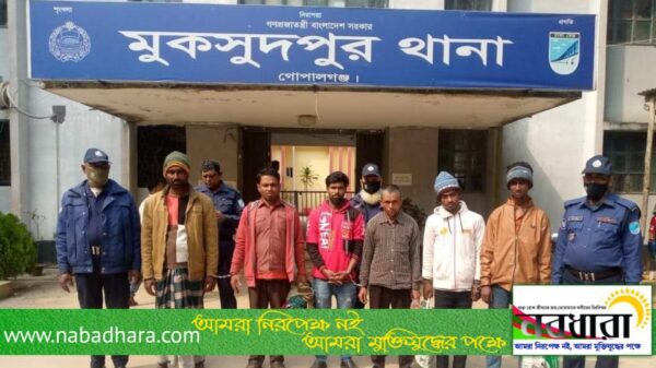 মুকসুদপুরে বিভিন্ন মামলার ৬ আসামী গ্রেফতার