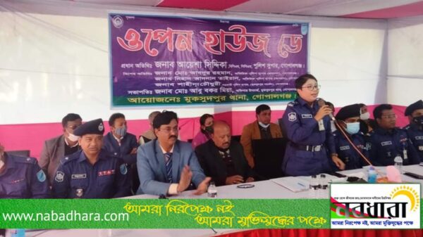 অনুষ্ঠিত ওপেন হাউজ ডে অনুষ্ঠানে গোপালগঞ্জ পুলিশ সুপার আয়েশা সিদ্দিকা ( বিপিএম,পিপিএম) বলেন, যে সকল সমস্যার কথা আপনারা তুলে ধরেছেন অতিদ্রুত সে সকল সমস্যার সমাধান করা হবে। আপনারা অন্যায় কাজ থেকে বিরত থাকুন, অন্যায়কে প্রশ্রয় দিবেন না। আপনারা সঠিক সময়ে সঠিক তথ্য দিয়ে পুলিশকে সহায়তা করুন। পুলিশ সর্বদা আপনাদের সেবায় নিয়োজিত।