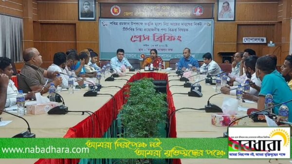 গোপালগঞ্জের জেলা প্রশাসক শাহিদা সুলতানা আজ শনিবার বিকেলে জেলা প্রশাসকের সম্মেলন কক্ষে অনুষ্ঠিত এক সংবাদ সম্মেলনের মাধ্যমে এ কথা জানান।এ সময় অতিরিক্ত জেলা প্রশাসক (সার্বিক) মোঃ ইলিয়াছুর রহমান, সদর উপজেলা নির্বাহী অফিসার মোঃ রাশেদুর রহমানসহ জেলা প্রশাসনের কর্মকর্তাগন উপস্থিত ছিলেন।