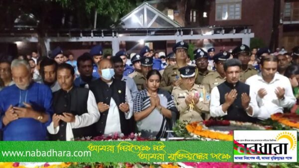 পুষ্পস্তবক অর্পণ শেষে ফাতেহা পাঠ করে বঙ্গবন্ধু, স্বাধীনতা সংগ্রামে আত্মদানকারী ৩০ লাখ শহীদ, জাতীয় ৪ নেতা ও ৭৫ এর ১৫ আগস্টের শহীদদের রুহের মাগফিরাত কামনায় বিশেষ দোয়া মোনাজাত করে প্রধানমন্ত্রী শেখ হাসিনার সুস্বাস্থ্য, দীর্ঘায়ু ও সাফল্য কামনা করা হয়। এসময় গোপালগঞ্জ জেলা আওয়ামী লীগের সাধারণ সম্পাদক মাহাবুব আলী খান, উপজেলা নির্বাহী অফিসার একেএম হেদায়েতুল ইসলাম, জেলা পরিষদের প্যানেল চেয়ারম্যান এমদাদুল হক বিশ্বাস, পৌর মেয়র শেখ তোজাম্মেল হক টুটুল, সহকারী কমিশনার (ভূমি) দিদারুল ইসলাম সহ আওয়ামী লীগ এবং সহযোগী সংগঠনের বিপুল সংখ্যক নেতা কর্মী উপস্থিত ছিলেন।