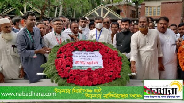 আজ শনিবার দুপুরে তিনি সমাধি সৌধের বেদীতে ফুল দিয়ে শ্রদ্ধা জানান।