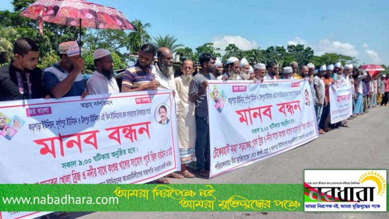 আজ বৃহস্পতিবার সকাল ১০টায় সদর উপজেলার কংশুর বাসষ্ট্যান্ডে গোপালগঞ্জ-টেকেরহাট আঞ্চলিক মহাসড়কের উপর দাঁড়িয়ে ঘন্টাব্যাপী মানববন্ধন কর্মসূচী পালন করা হয়। এসময় হাতে হাত ধরে খোলা ব্রীজ নির্মাণ ও খালের পুনঃ সংযোগের দাবীতে বিভিন্ন শ্লোগান দেন মানববন্ধকারীরা।