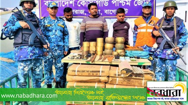 বাগেরহাটের সুন্দরবন এলাকায় পশুর নদী থেকে বাণিজ্যিক জাহাজ থেকে চোরাইকৃত মালামাল সহ ০২ চোরাকারবারীকে দেশীয় ধারালো অস্ত্র ও নগদ টাকা সহ আটক করেছে কোস্ট গার্ড মোংলা।