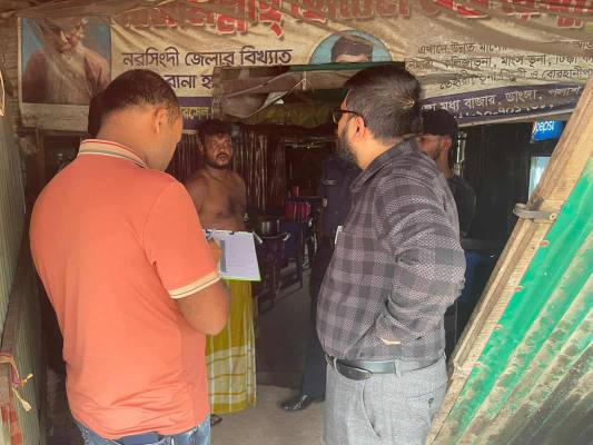 নরসিংদীর পলাশ উপজেলার ডাঙ্গা বাজারে অস্বাস্থ্যকর পরিবেশে খাদ্যদ্রব্য সংরক্ষণ ও পরিবেশনের দায়ে দুইটি হোটেলকে মোট ১০ হাজার টাকা জরিমানা করা হয়েছে। সোমবার (৩০ জুন) সকালে জাতীয় ভোক্তা অধিকার সংরক্ষণ আইন, ২০০৯ অনুযায়ী এ অভিযান পরিচালনা করেন পলাশ উপজেলার সহকারী কমিশনার (ভূমি) ও নির্বাহী ম্যাজিস্ট্রেট এ এইচ এম ফখরুল হোসাইন। অভিযানে পলাশ থানা পুলিশ সহায়তা প্রদান করে।