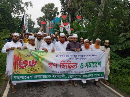 ৩৬ জুলাই গণঅভ্যুত্থানের প্রথম বার্ষিকী উপলক্ষে খুলনার তেরখাদায় বর্ণাঢ্য গণ মিছিল ও সমাবেশ আয়োজন করেছে বাংলাদেশ জামায়াতে ইসলামী।