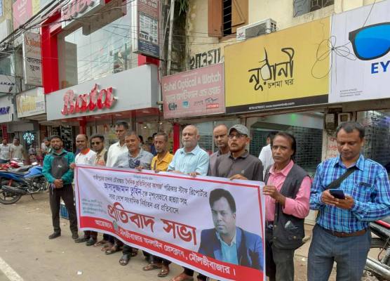 জনসমক্ষে গাজীপুরের চান্দনা চৌরাস্তা এলাকায় অস্ত্রধারী দুর্বৃত্তদের এলোপাতাড়ি হামলায় দৈনিক প্রতিদিনের কাগজ পত্রিকার রিপোর্টার আসাদুজ্জামান তুহিন খুনসহ সারাদেশে সাংবাদিক নির্যাতনের প্রতিবাদে এবং অবিলম্বে মূল পরিকল্পনাকারীসহ হামলাকারীদের গ্রেফতার করে দৃষ্টান্তমূলক শাস্তির দাবিতে মৌলভীবাজার অনলাইন প্রেসক্লাব-এর উদ্যোগে চৌমোহনা চত্বরে সর্বস্তরের সাংবাদিকসহ নানা পেশার মানুষের অংশগ্রহণে প্রতিবাদ সভা অনুষ্ঠিত হয়েছে।